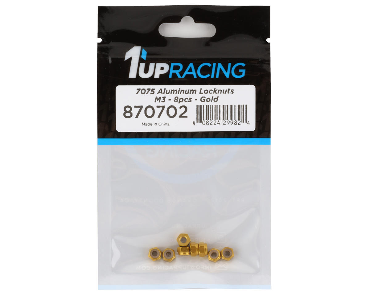 1UP Racing 3mm Aluminum Locknuts Lightweight and Durable Gold 8 Pieces 1UP870702
