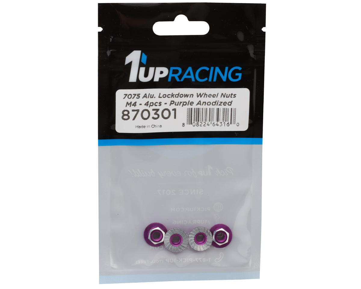 1UP Racing 4mm "Lockdown" Serrated Aluminum Wheel Nuts. Constructed from premium-grade 7075 aluminum these locknuts are both lightweight and incredibly strong. Utilizing a serrated flanged surface these offer additional grip strength ensuring your wheel nuts stay secure over time. Available in a variety of colors these are the perfect addition for your build.