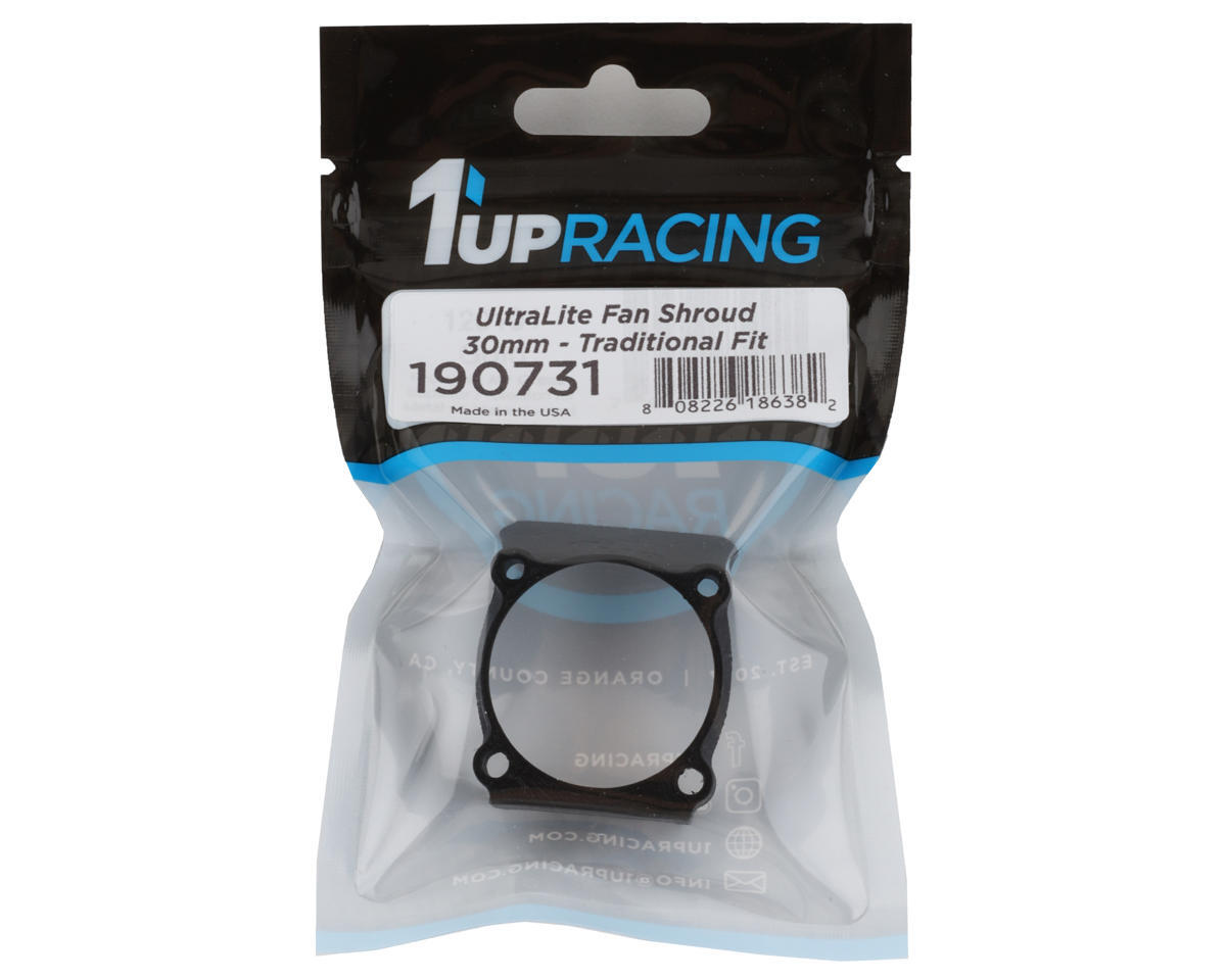 This is the 1UP Racing UltraLite 30mm Fan Shroud. Designed to maximize the effectiveness of your motors cooling fan this made in the USA shroud gives you a high quality and light weight cooling solution. This 3D printed shroud is a perfect match for the 1UP Racing UltraLite 30mm Aluminum Cooling Fan but is also compatible with most 4-hole 30mm fans. With additional cooling on your side enjoy the benefits of being able to push your electronics harder than your competition, with this UltraLite 30mm Fan Shroud from 1UP Racing.