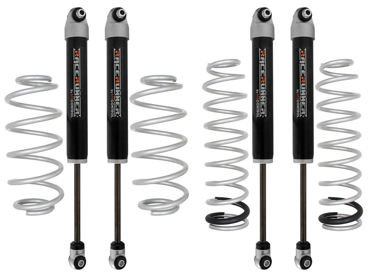 Introducing the aFe POWER RaceRunner 2.0 IN leveling kit, an affordable suspension solution that combines capability and comfort. Engineered with RaceRunner shocks, finely tuned to strike the ideal balance between on-road comfort and off-road performance through their Internal Floating Piston (IFP) valving. Paired with RaceRunner leveling coil springs, this kit provides heightened ride clearance, superior handling, and enhanced vehicle control for both on-road and off-road adventures.