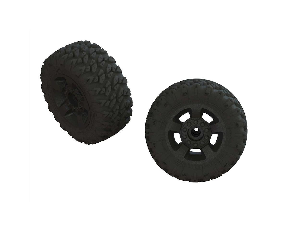 Restore the aggressive stance and all-terrain traction of your Arrma Big Rock 3S BLX with this pair of genuine replacement tires. These are the factory-standard "Meat and Potatoes" tires that give the Big Rock its distinctive wide-track look and capability.