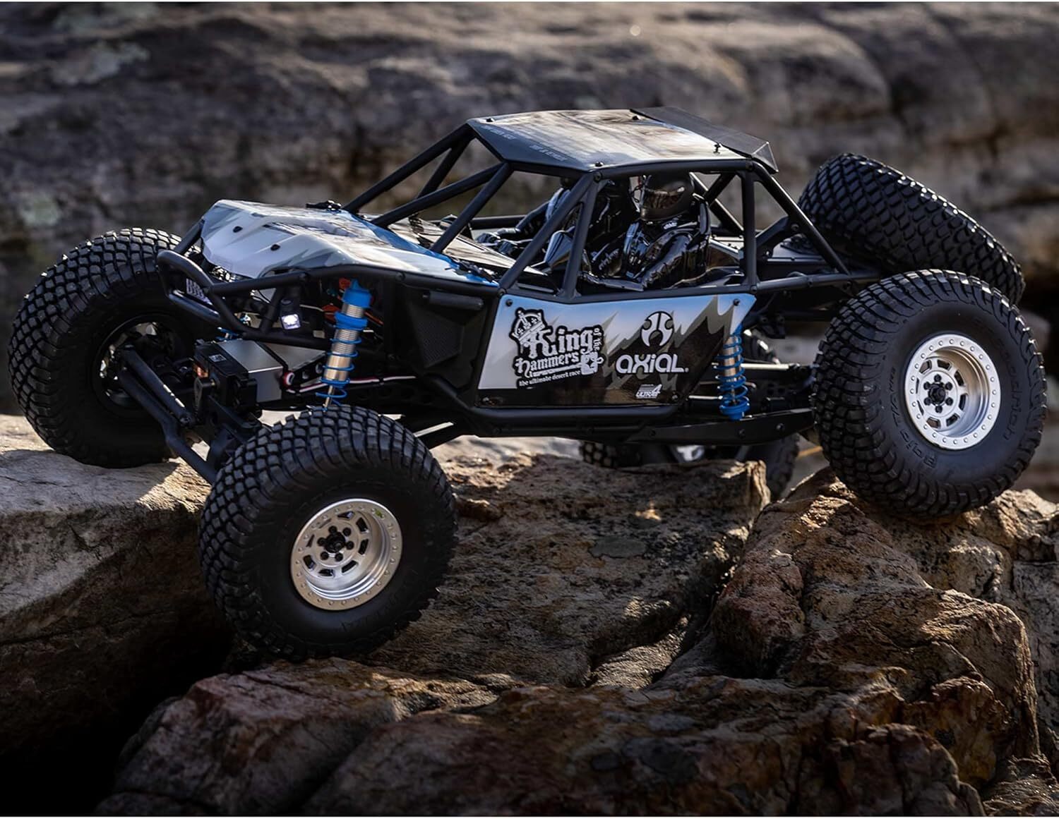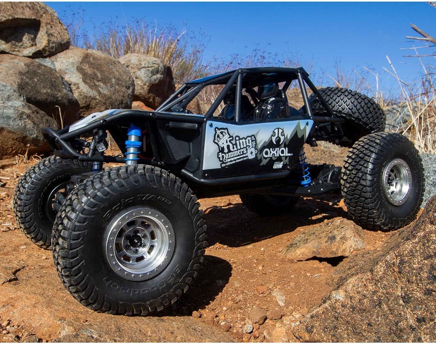 The Axial RR10 Bomber KOH 1/10 RTR Rock Racer is a Limited Edition truck that has been specially made to commemorate King of the Hammers (KOH) - One of the world's premier off-road races since 2008. Axial has designed this in partnership with Randy Slawson, the reigning 3-time KOH champion and the owner of Bomber Fabrication. Together they created a scale rock racing rig built on the fast, durable Axial full tube chassis. The body features graphics specific to this release showcasing past winners of King of the Hammers.