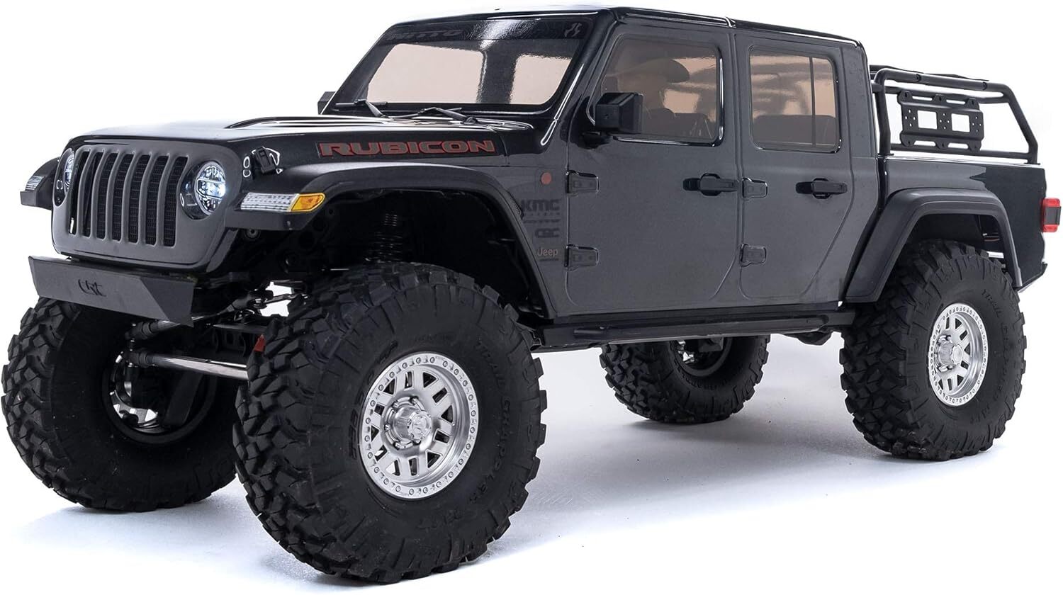 Topping off the chassis is a scale Jeep JT Gladiator body that mirrors its full-size counterpart with many highly authentic details. The body has over 20 injection-molded parts including a bed rack, door handles, mirrors, hood vents and more - taking polycarbonate body realism to the next level. The body has been split into three pieces for a more realistic deep bed. Officially licensed Nitto Trail Grappler tires on 3-piece beadlock wheels add more scale realism and more grip on dirt, rocks, and all other off-road trails.
