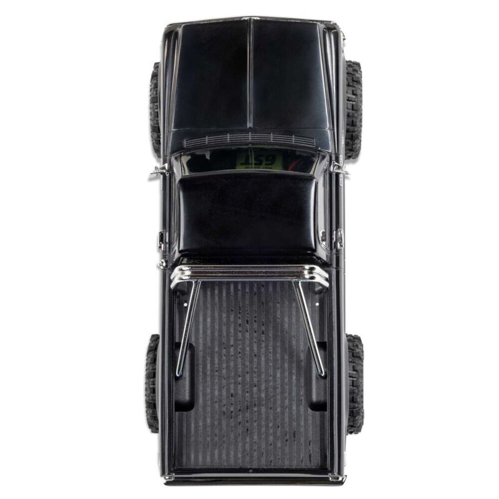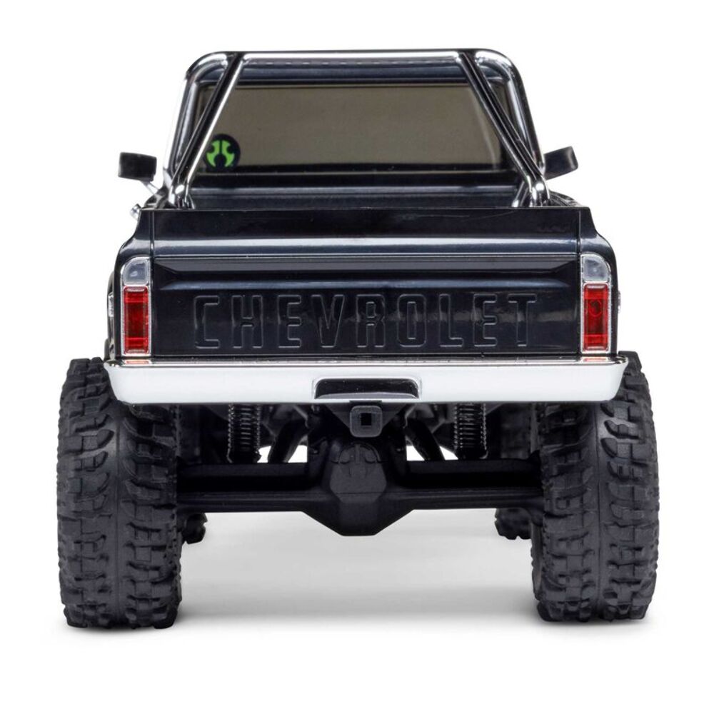 The Chevy K10 includes an angled skid plate to let you easily slide over challenging obstacles - a feature usually found only in competition crawlers. Ramped axle housings and high clearance links also help to avoid dragging and hangups. Climbing stability on the rocks gets a boost from the chassis’ forward weight bias. Other performance features include damped 25mm shocks, full ball bearings, a powerful Axial 65T motor, and dependable Spektrum electronics that are mounted low in the chassis for the optimal center of gravity.
