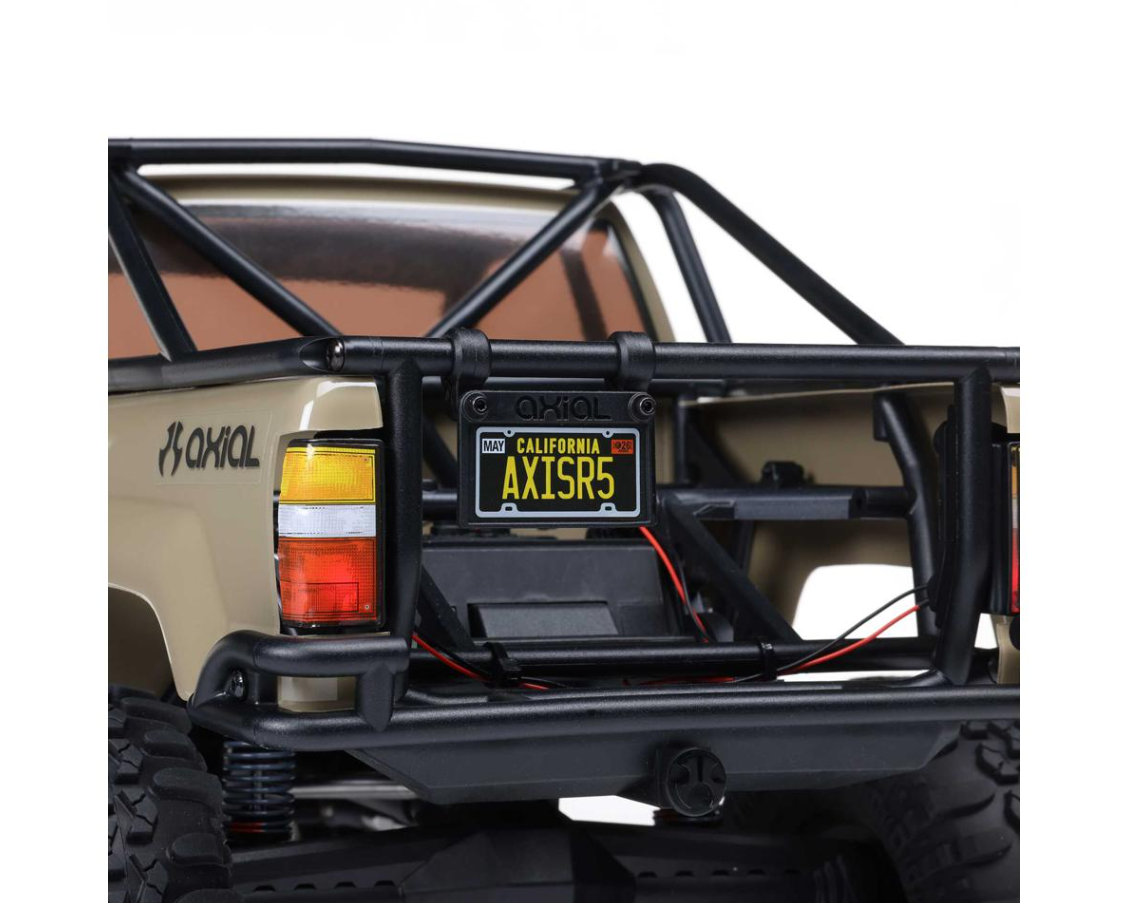 The SCX10 III 1987 Toyota SR5 arrives fully equipped with a dependable electronics package designed to make trail driving intuitive and enjoyable. The Spektrum SLT3 transmitter offers comfortable ergonomics and beginner-friendly features, while the Spektrum SR515 DSMR® five-channel water-resistant receiver ensures reliable signal control even in harsh conditions. Power delivery comes from a Spektrum 40-amp brushed ESC paired with a proven Axial brushed motor, giving the truck smooth throttle response and excellent low-speed crawling precision. A water-resistant metal-gear servo rounds out the system, providing the torque needed to navigate technical obstacles with confidence.