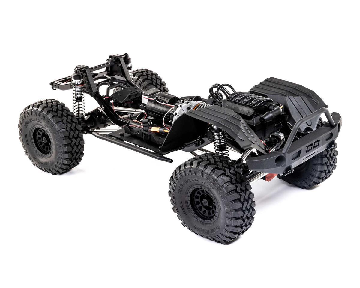 The SCX6 Honcho is engineered for extreme durability and performance, as shown by its AR90 axles with metal ring and pinion gears and front offset pumpkin. For optimal handling, the chassis has a three-link front and four-link rear suspension setup and metal links are used at all suspension points. The transmission offers high and low gears out of the box, with a Spektrum S614 metal gear high-torque servo included and installed for the two-speed linkage.