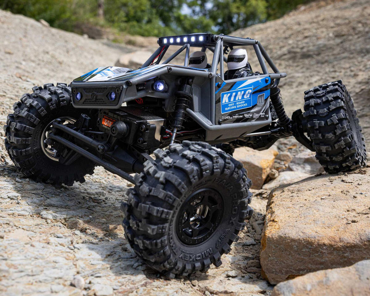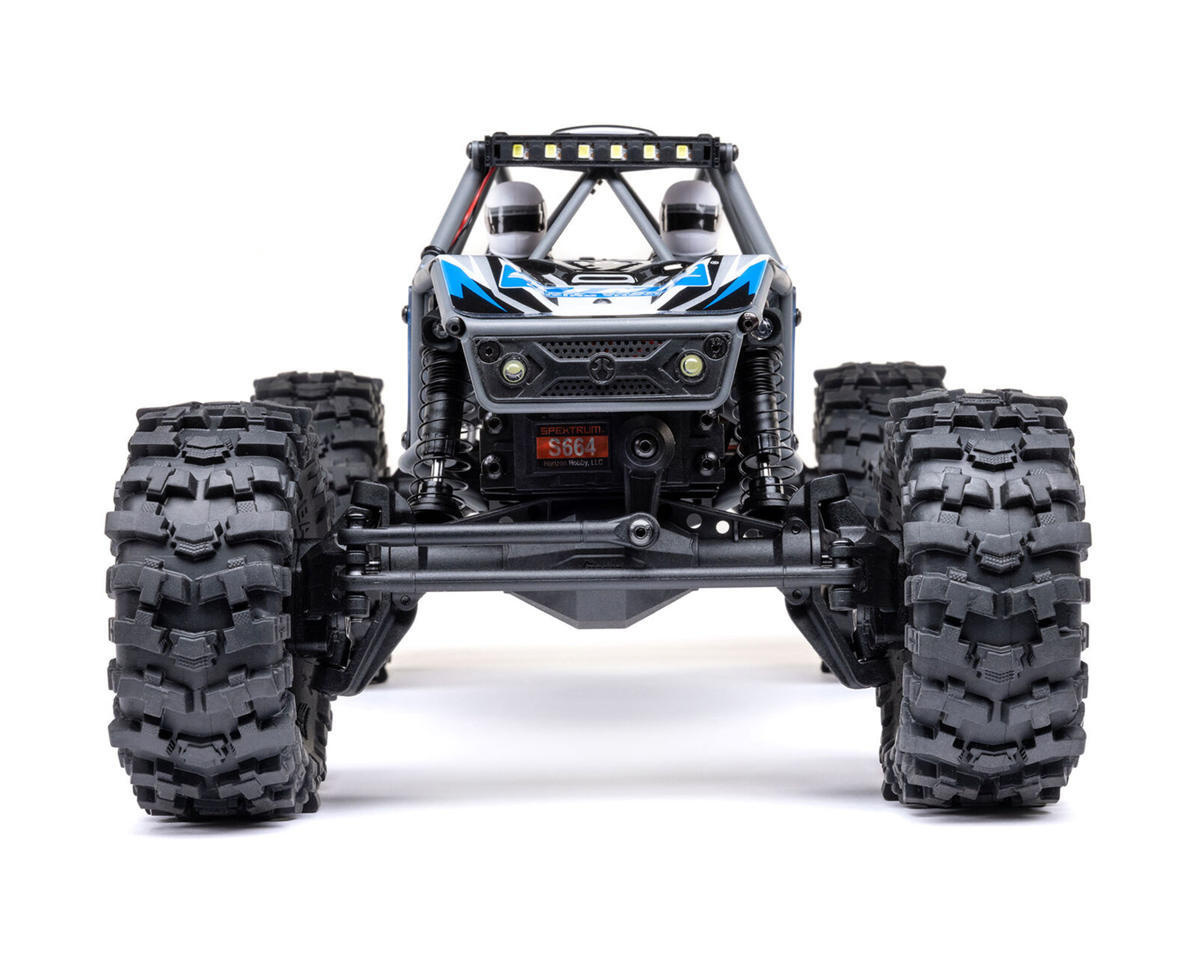 Axial has equipped the UTB18 Capra 4WS with high-quality Spektrum electronics that enhance its performance and versatility. The included three-channel Spektrum SLT3 transmitter works alongside a stand-alone five-channel SR515 receiver and Spektrum Firma 25A ESC, which supports lighting upgrades and other compatible transmitters. Two Spektrum S664 twenty-five-tooth steering servos and a powerful 650mAh 2S LiPo battery ensure strong, responsive control, and the Spektrum Smart USB-C charger keeps the rig ready for extended trail runs. Additionally, the UTB18 Capra 4WS comes with working LED headlights, a light bar, and rock lights, allowing for clear visibility and continued adventure even after the sun sets.