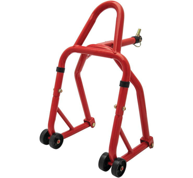 Crafted for durability, the Front Head Lift Stand features sturdy wheels that offer long-lasting service life, providing stability and mobility as you work on your bike. Compatible with most sport bikes, it includes five steering stem pins (13mm, 15mm, 16.5mm, 17mm, and 18mm) for a perfect fit, ensuring versatility and compatibility with your specific motorcycle model.