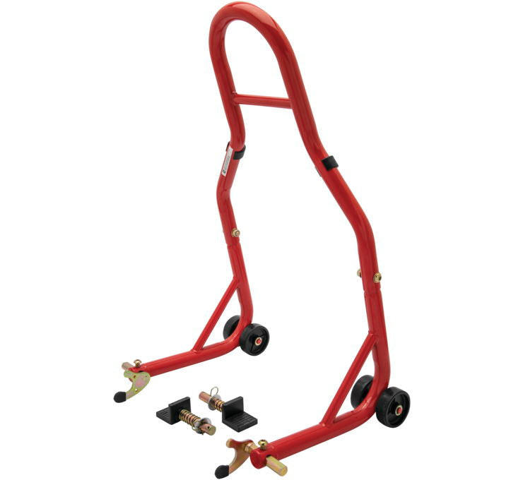 Crafted with durable wheels and heavy-duty steel construction, the Rear Stand Lift ensures long-lasting service life, providing stability and reliability as you work on your bike. The red powdercoat paint adds both style and protection to the stand, enhancing its durability and aesthetic appeal.