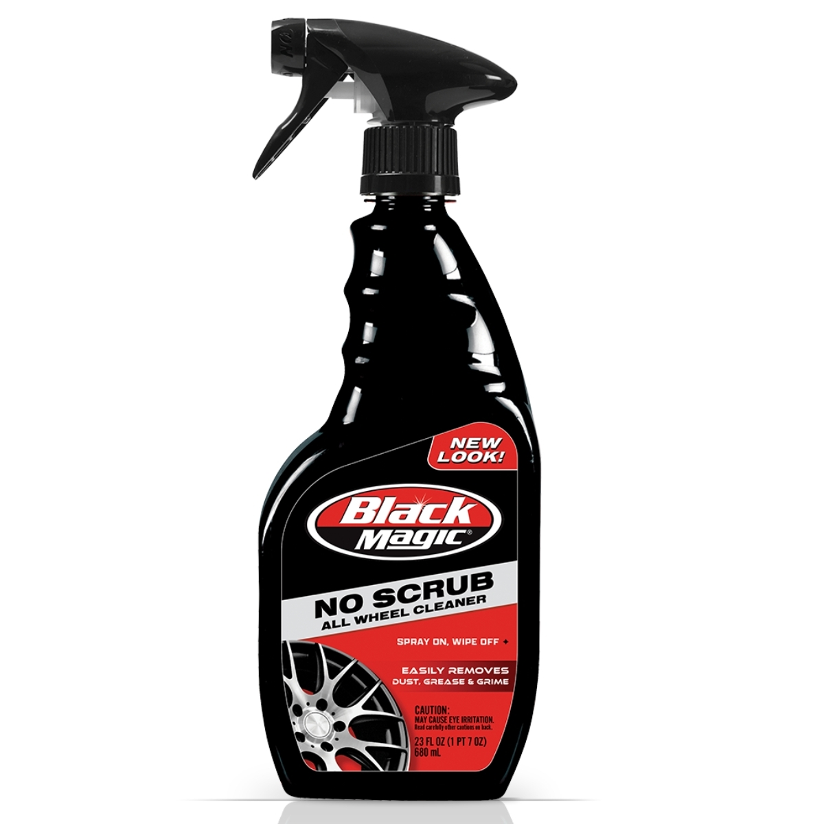 Great looking rims make your vehicle stand out. Black Magic® No Scrub All Wheel Cleaner dissolves brake dust, dirt and road grime quickly and easily. It’s powerful formula improves the appearance of all types of wheels without hazing or discoloration. Safe for use on ABS plastic, chrome, aluminum, wire and mag wheels with clearcoat, polished, painted or anodized finish.