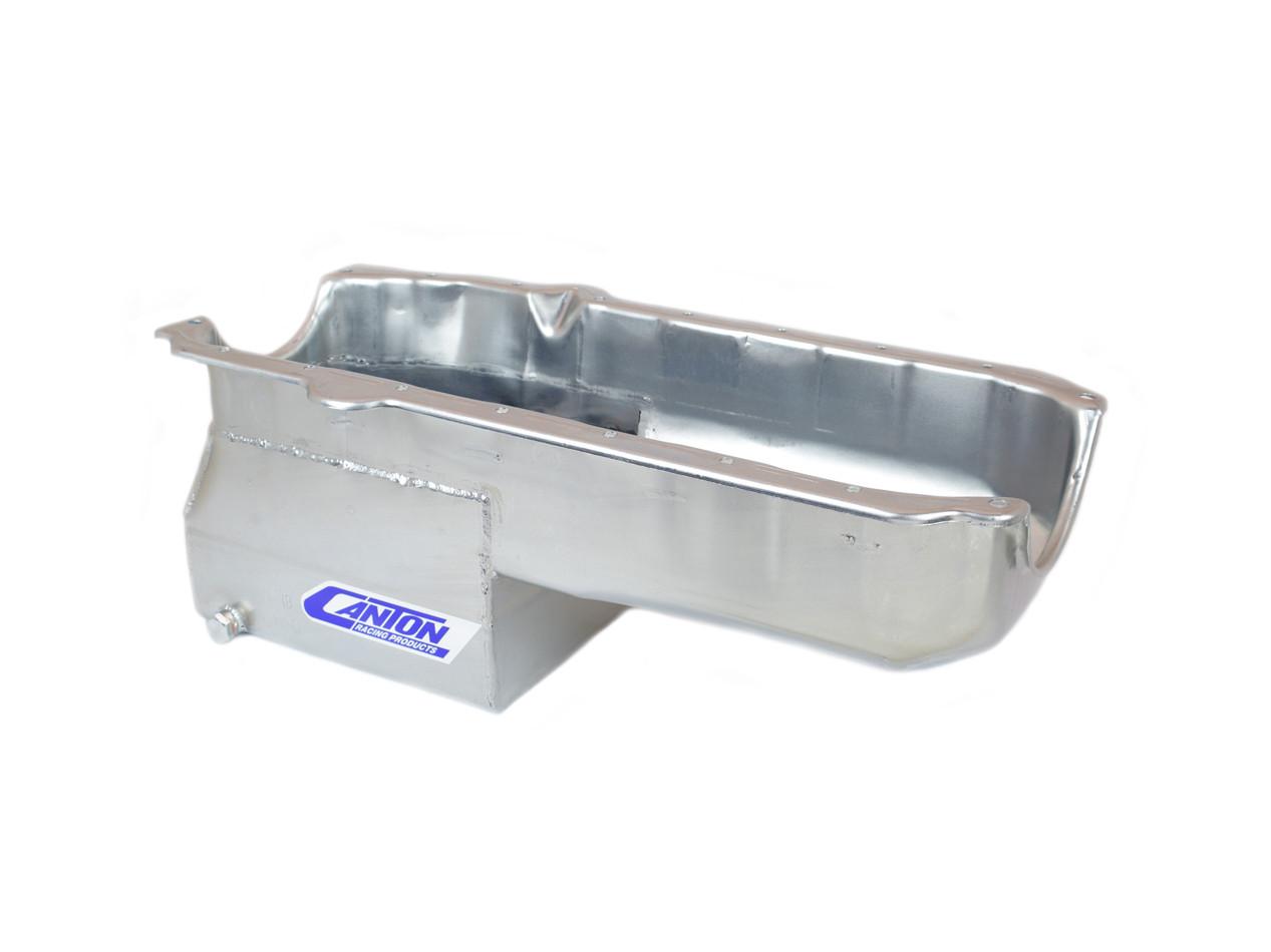 Tailored for Small Block Chevy pre-'80 blocks with a left side dipstick, this Bracket Drag Race Oil Pan from Canton Racing is crafted to meet the demands of drag racing while ensuring compatibility with most stock chassis. Featuring an 8" deep by 9-1/2" long sump, this pan boasts a 6 qt. system capacity, making it an ideal choice for high-performance applications. It effectively clears a 3.875" stroke with a steel rod and can work seamlessly with both stock and aftermarket starters. This pan requires one of Canton Racing's pickups for optimal performance.