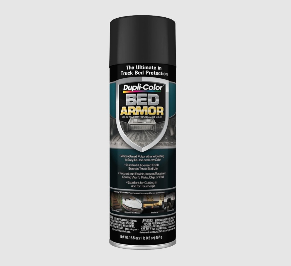 Dupli-Color Bed Armor Do-It-Yourself Truck Bed Coating is now available in aerosol. Just like the Bed Armor Truck Bed Coating Kit, Bed Armor Aerosol is a water-based polyurethane formulated with ground up rubber particles to provide uniform texture and skid resistance - it’s easy to use and offers the same durability and protection. Bed Armor Aerosol won't chip, fade, or flake and has a textured, black satin finish to fully protect your truck bed - and any wood, concrete, fiberglass or metal surface. Use Bed Armor Aerosol with the Bed Armor Kit to cut in those tough-to-reach corners and seams on your truck bed or when touch-up is needed.