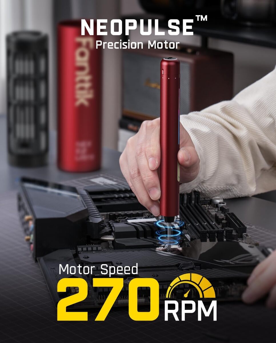 - Powerful Torque, Precise Control: With up to 0.6N.m torque and a 270RPM motor, the Fanttik NEX E2 Ultra makes precision repairs effortless. 5 gear torque adjustment (0.05/0.1/0.2/0.4/0.6N.m) ensures quick assembly without damaging delicate devices. Perfect for tablets, phones, watches, laptops, and small appliances.