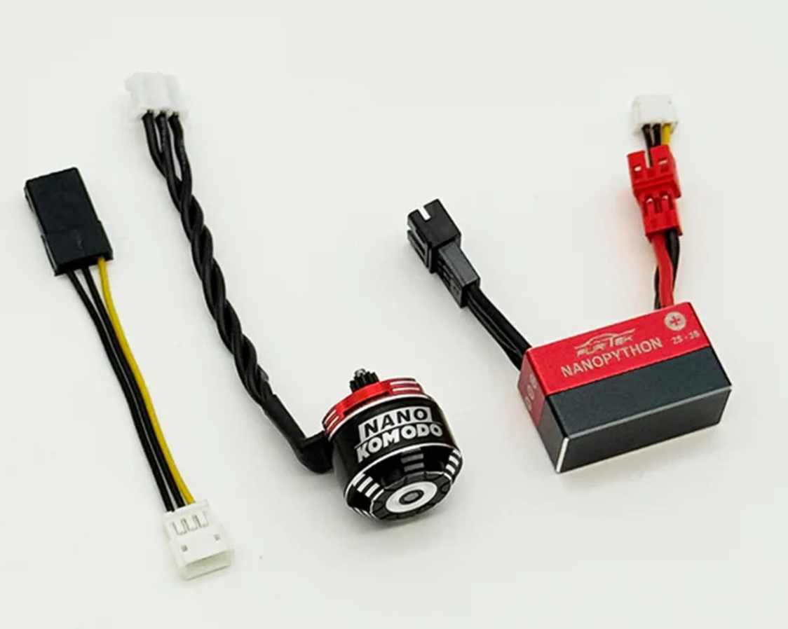 The Furitek NanoModo 2026 Control System is an all-in-one brushless conversion kit designed specifically for the Axial SCX30. It includes the Nano Python ESC and Nano Komodo motor, delivering a seamless power and control upgrade.