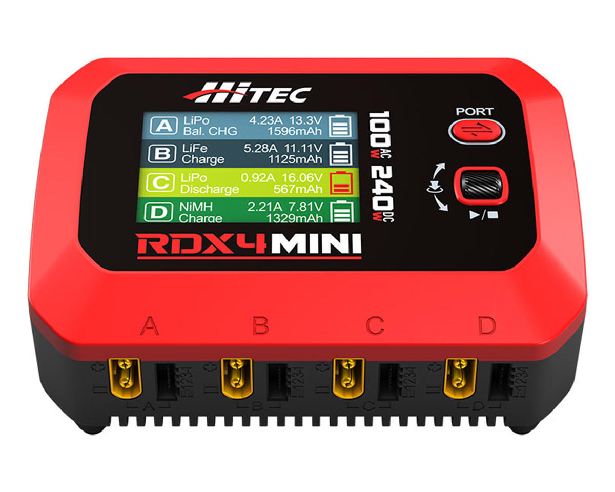 The Hitec RDX4 Mini Quad Smart LiPo Battery Balance Charger represents a modern approach to RC power management, combining high capability with a space-saving form factor. Designed for enthusiasts who want serious performance without clutter, it streamlines charging tasks while fitting easily into home workspaces or trackside setups.