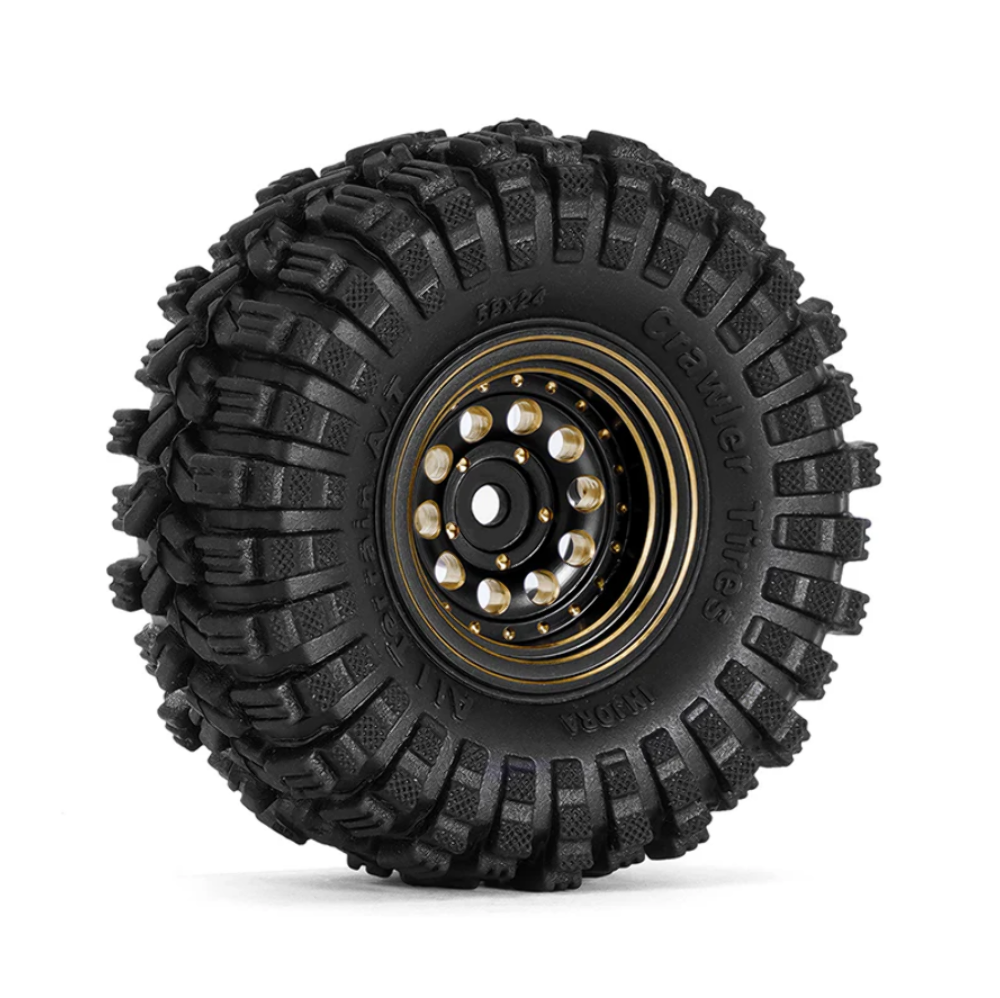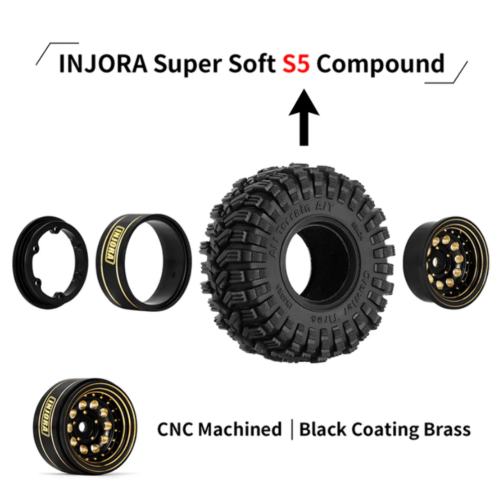 INJORA Black Coating Brass 1.0" Beadlock Wheel Tires Set for 1/24 1/18 RC Crawler Car Axial SCX24 AX24 TRX4M FCX24