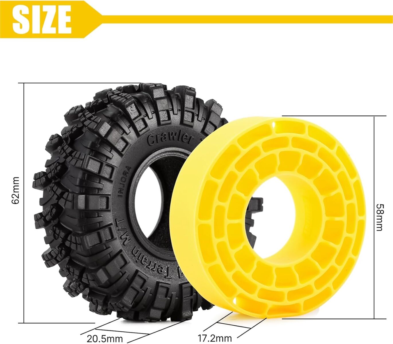 INJORA 1.0" 62*20.5mm Tires & Silicone Rubber Inserts Combo (4) (T1007)