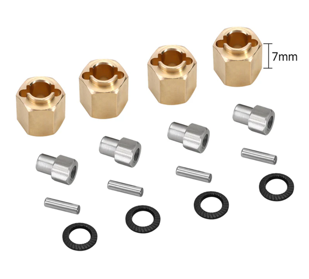 INJORA 7MM Brass Wheel Hex Hub Extenders 5/6/7/10MM Thickness for 1/18 RC Crawler Car TRX4M Upgrade Parts (4M-02)