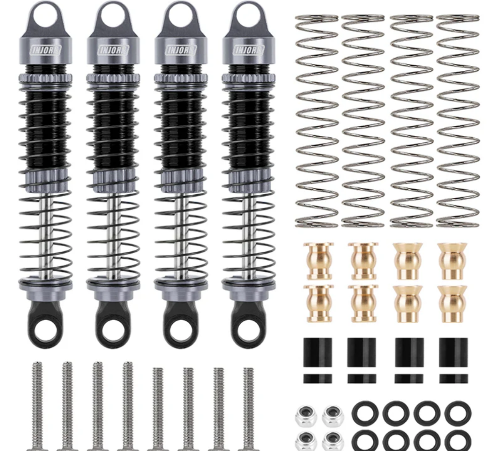 Upgrade your HPI Venture 18 and Redcat Ascent18 with the Injora 59mm Aluminum Oil-Filled Threaded Reservoir Shocks, precision-engineered for performance and scale realism. CNC-machined from high-quality aluminum, these shocks feature threaded bodies for quick spring preload adjustments, an inner O-ring sealing system to prevent leaks. This delivers ultra-smooth dampening action and expanded tuning capabilities, making them a superior alternative to stock shocks!