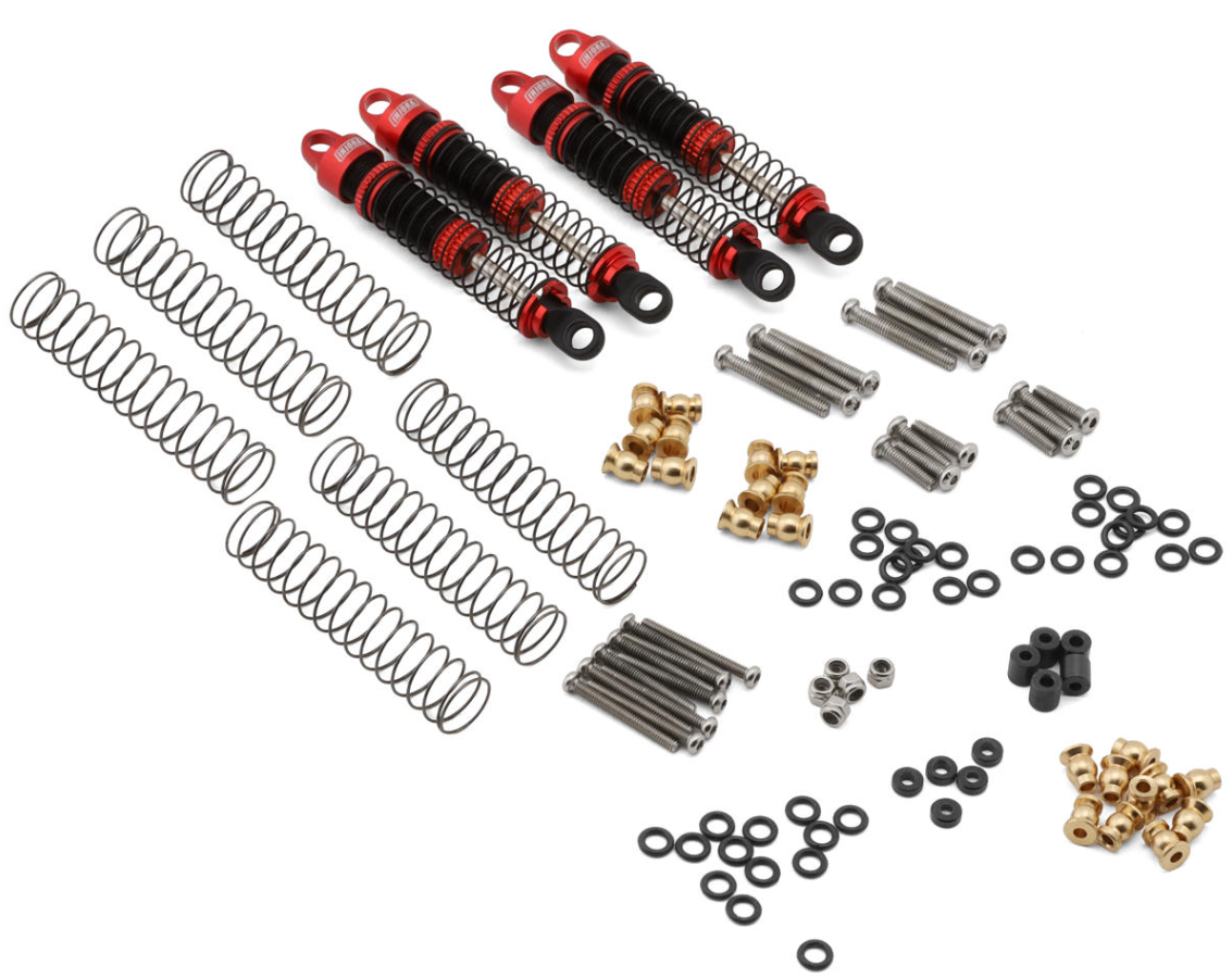 Designed for maximum suspension performance and durability, these 59mm shocks are fully serviceable design allowing hobbyists to fine-tune spring rates and damping characteristics, while the scale-accurate look adds a professional-grade appearance. Whether you're crawling or bashing, these shocks offer smoother, more controlled suspension response with extra tunability and no-fuss maintenance.