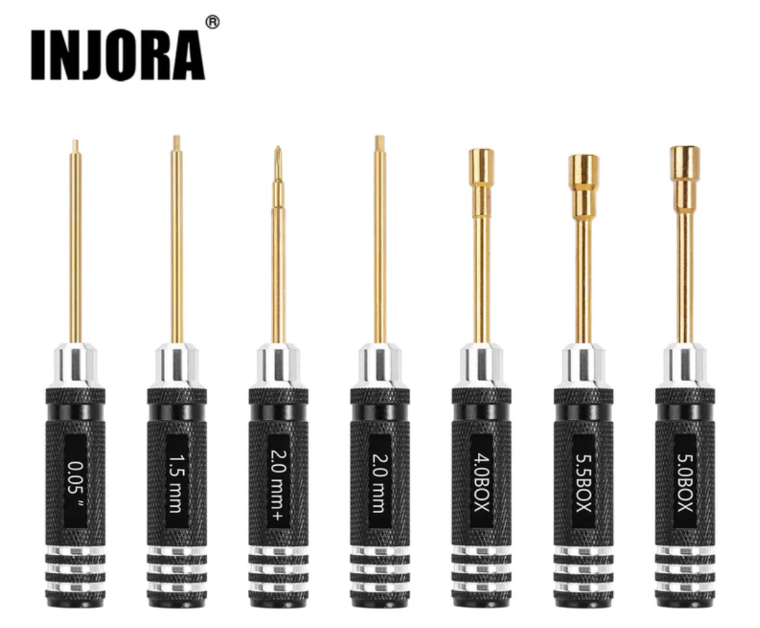 INJORA 7PCS Short Handle HSS Nut Driver Hex Screwdriver Tools Kit For 1/18 1/24 RC Mini Crawler Car TRX4M SCX24 FCX24