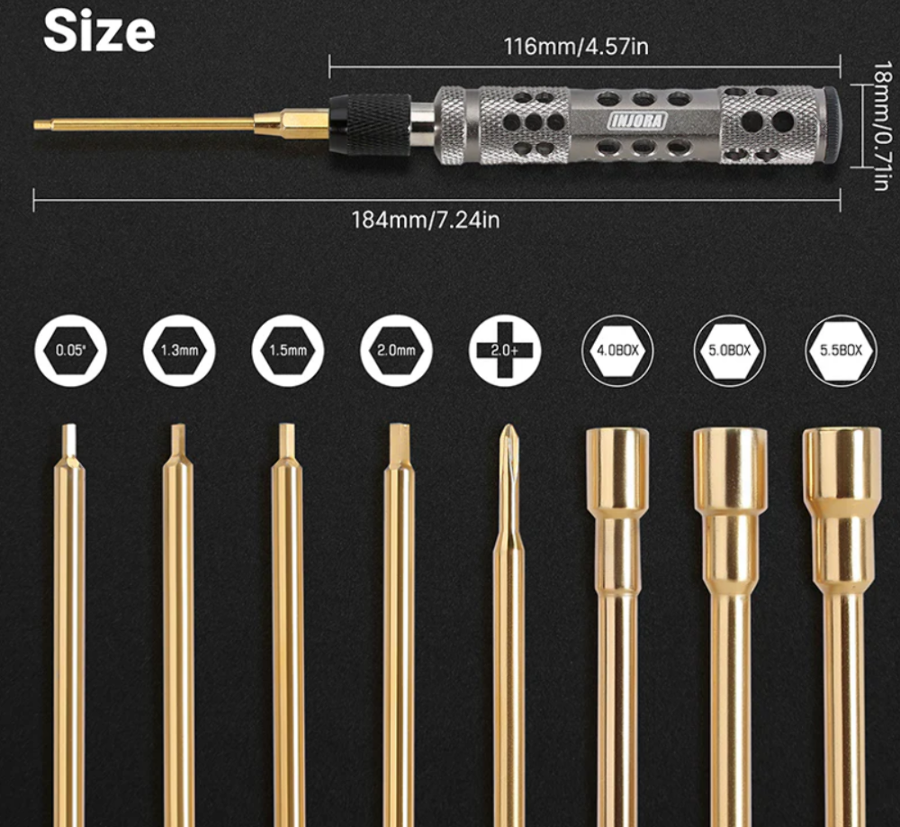 INJORA Quick Change Allen Key Hexagon Screwdrivers Hex Nut RC Tool Kit for 1/18 1/24 RC Crawler Axial SCX24 AX24 FMS FCX24 TRX4M