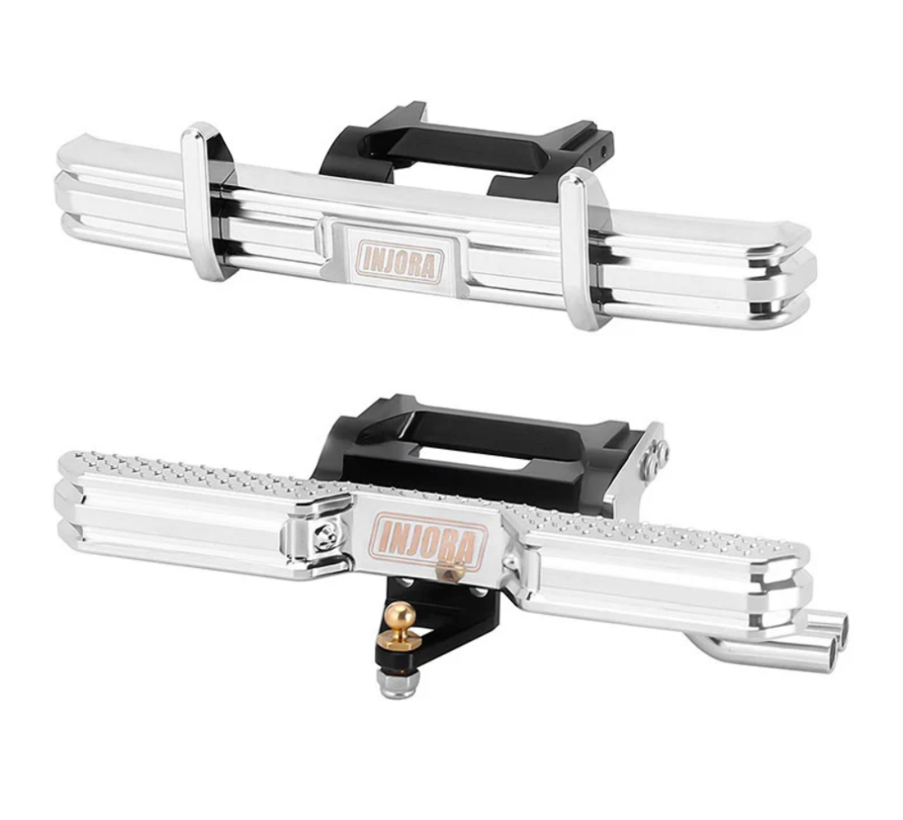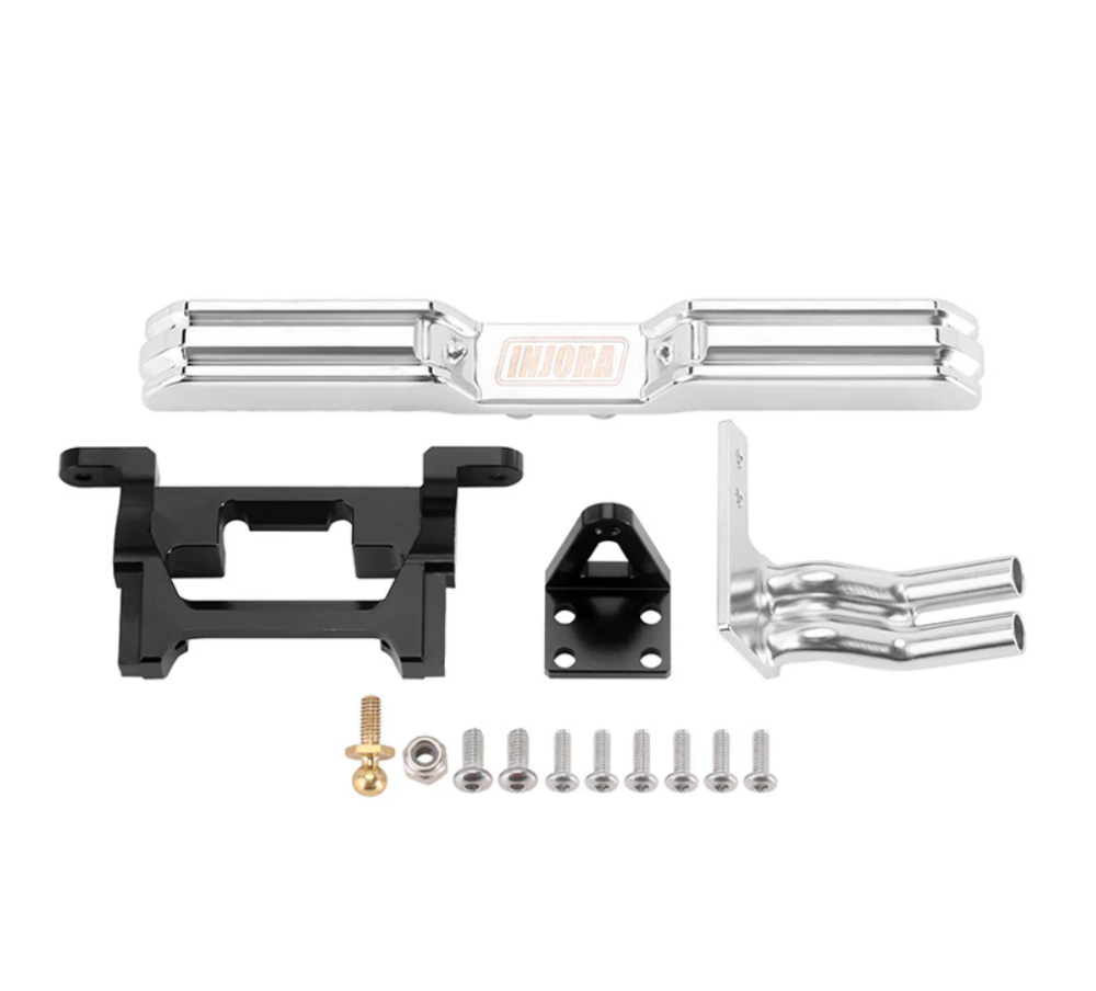 INJORA CNC Aluminum Front Rear Bumper with Dual Exhaust for 1/18 RC Crawler TRX4M High Trail F150 Upgrade (4M-95)