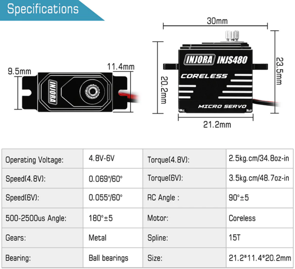 INJORA INJS480 Coreless Micro Servo with Servo Horn for 1/24 Axial SCX24