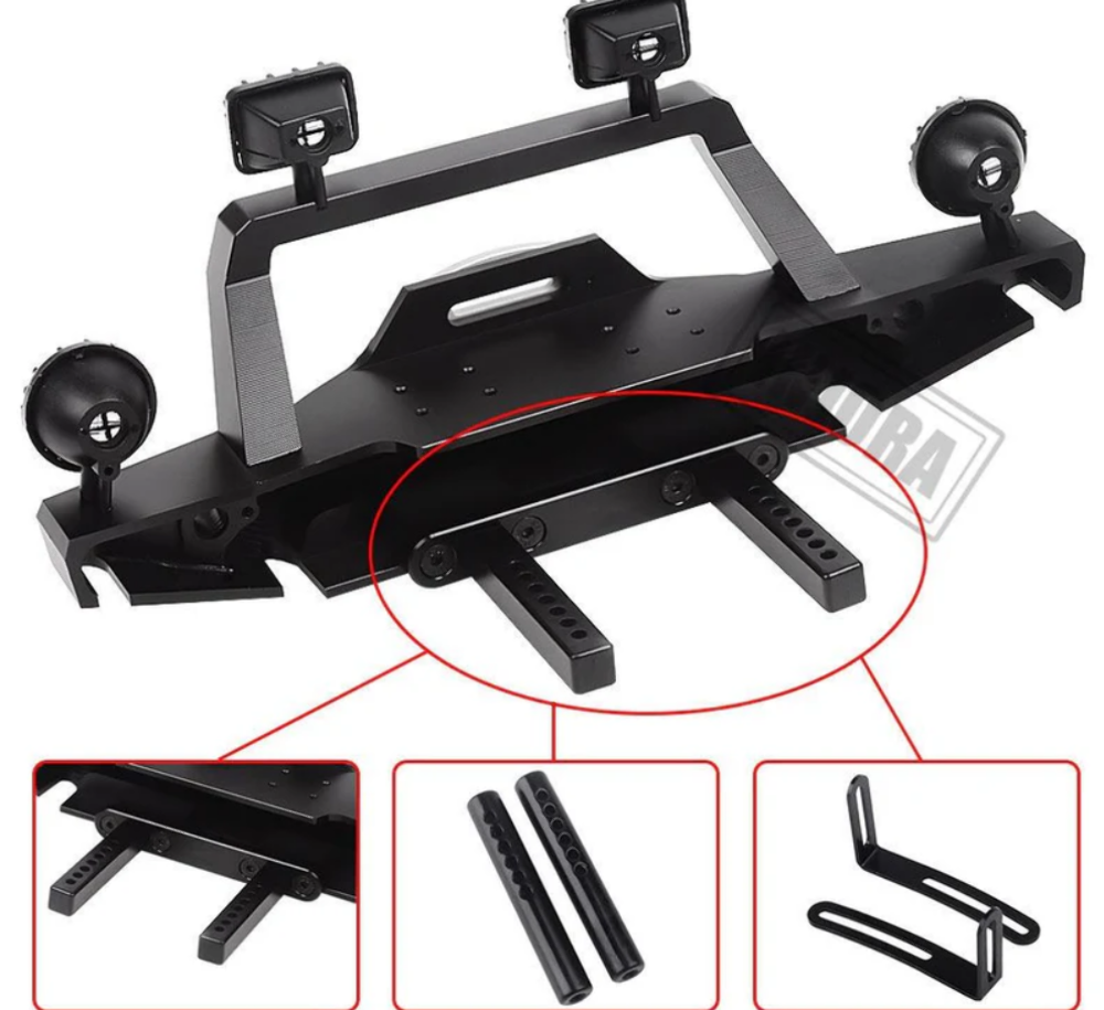 INJORA TRX-4 Metal Front Bumper with Led Light for 1/10 RC Crawler Traxxas TRX4 Sport 82024-4 Parts