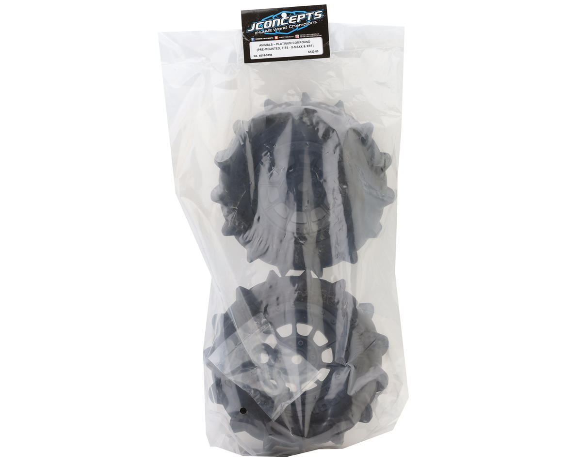 The JConcepts Animal Paddle Tires are the ultimate solution for slinging dirt, sand, and dust with ease. Designed to fit large-scale RC vehicles like the X-Maxx and XRT, these tires feature a large, rugged carcass and strategically placed upper paddles to provide exceptional traction on a variety of surfaces. The scoop-shaped paddles dig deep into the terrain, propelling your vehicle forward while kicking up rooster-tails of sand and dirt. Whether you're bashing through dunes or cutting through dirt, the Animal Tires deliver top-tier performance and durability. The tires come pre-mounted on the multi-piece Hazard wheels and include open-cell inserts for added versatility and reliability.