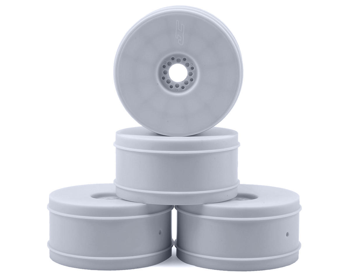The wheel features durable yet flexible inner ribbing and lightened features that help to reduce rotating weight. The outer face highlights a slightly concave shape and outer lightening “bullet” holes around the axle area. The wheels incorporate an outer glue catch that helps to channel excess glue and prevent it from running down the wheel face during the gluing process. JConcepts wheels are manufactured using advanced techniques to ensure trueness and durability and are branded with the small JC logo for brand identification and authenticity.