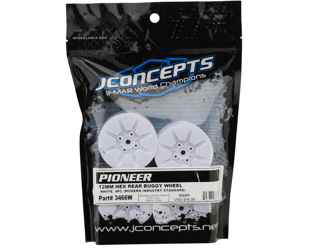 The JConcepts Pioneer 2.2 Rear Buggy Wheels with 12mm hex blend retro inspiration with modern performance, offering a unique design for today's 2WD buggy racers.