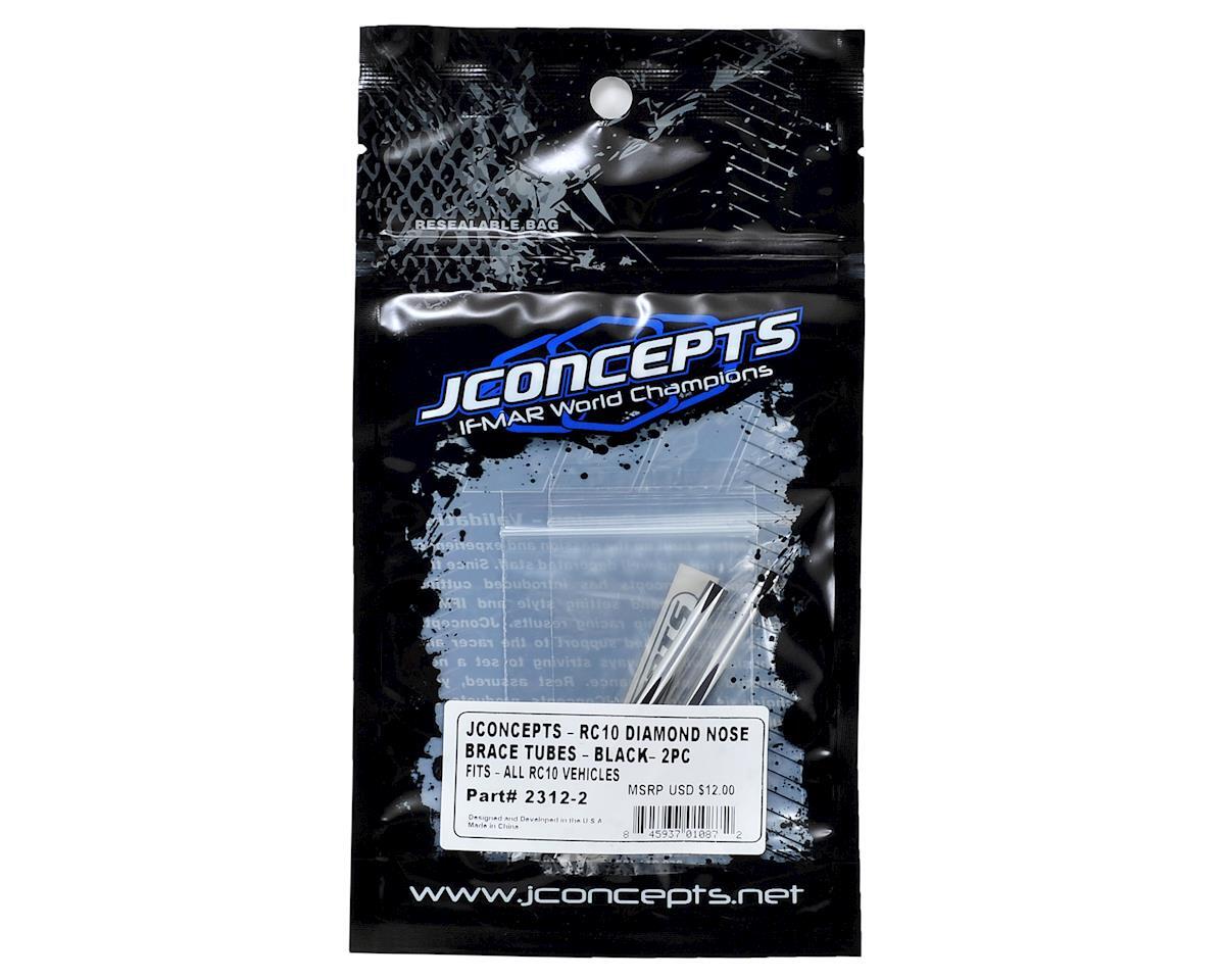 This is a pack of two optional JConcepts RC10 Classic Diamond Nose Brace Tubes. The JConcepts aluminum nose brace tube features a custom machined hex and diamond pattern that delivers a sense of aesthetics that cannot be matched. these diamond tubes jump out with a pattern of black hex flats matching a gold or black chassis combination. 4-40 threaded holes bolt up to the RC10 with ease and are direct replacements for the stock components.
