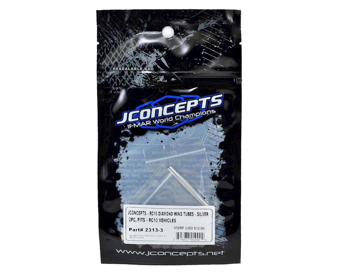 This is a pack of two optional JConcepts RC10 Classic Diamond Wing Tubes. The JConcepts aluminum wing tube features a custom machined hex and diamond pattern that delivers a sense of aesthetics that cannot be matched. Available in both black and silver color schemes, the diamond tubes in silver raise the glamor level in the chassis and can be matched to any other anodized chassis color. The tubes are sized to slide into the bulkhead and press into position similar to the stock components.