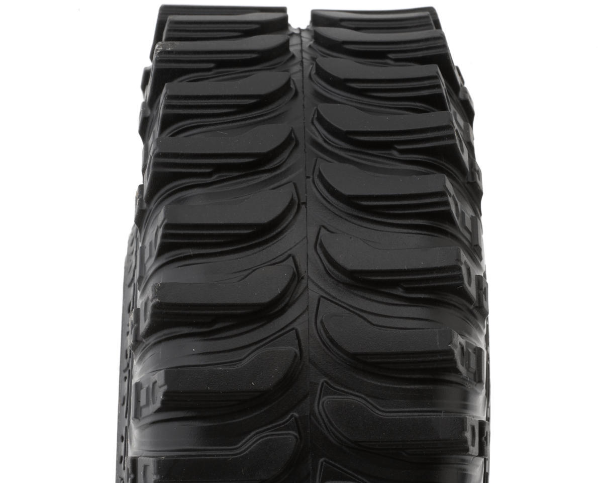 JConcepts The Hold has an assertive Purpose-built sculpted crawling tread design that adeptly tackles diverse scale off-road landscapes. Prominent horizontal traction bars secure grip on a wide range of surfaces from dirt, asphalt, grass, mud, rock, and clay. The tread tip initiates a downward shift, unveiling an additional gripping flat bar, enhancing traction. Angular segments during bar transitions add stability, edginess, and multi-directional capability, slicing through varied environments with ease.