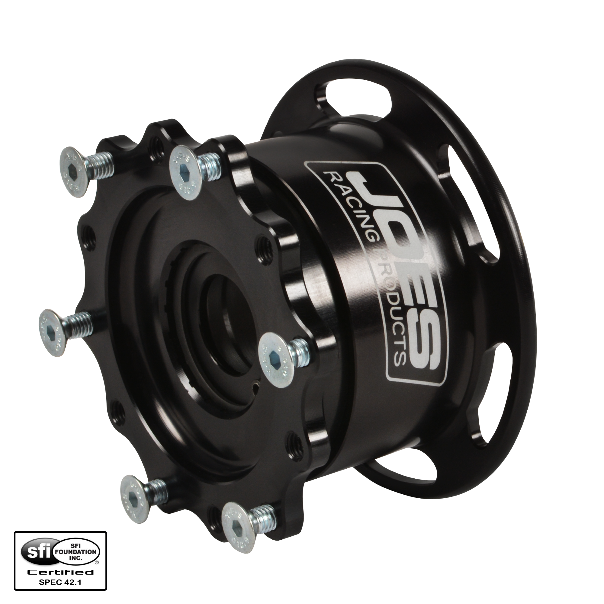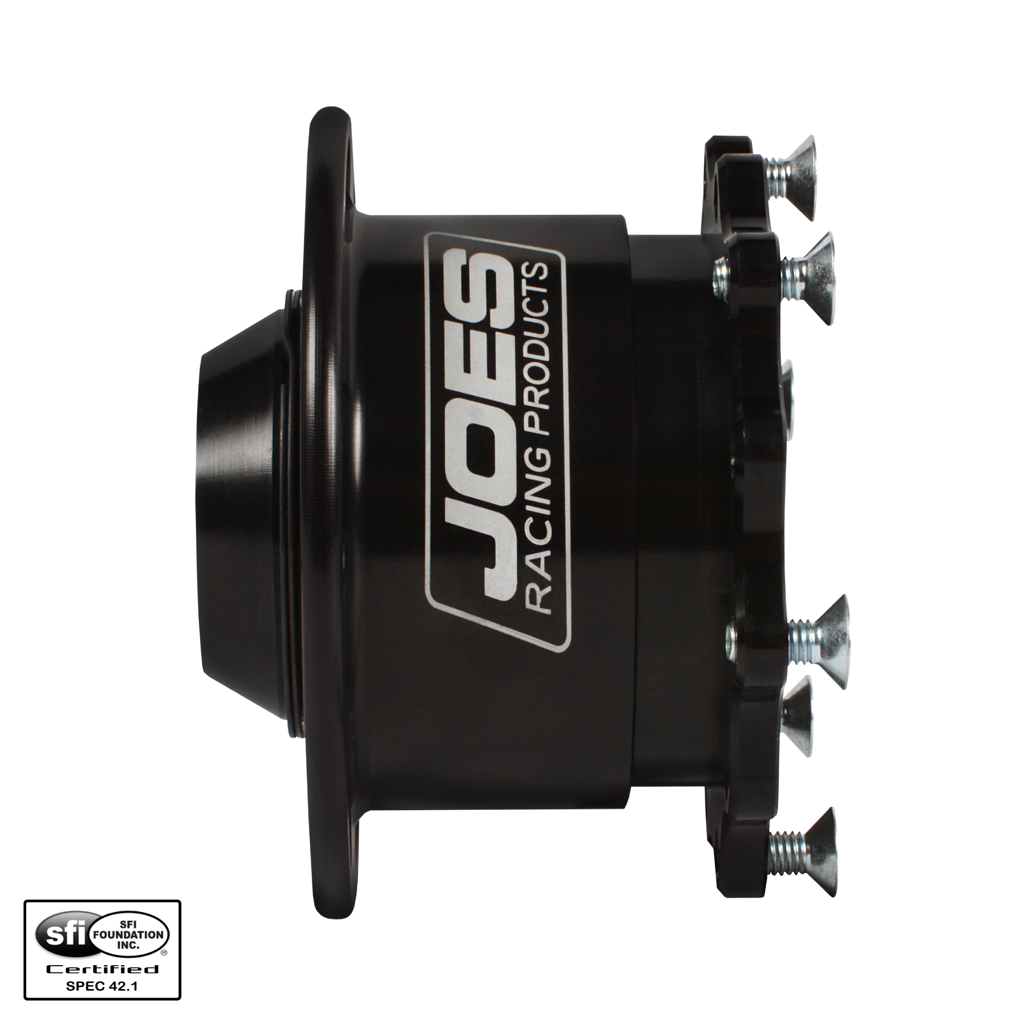 JOES Pro Quick Release is precision machined and designed for longevity, ease of use and safety. The lightweight and SFI Certified aluminum quick release pushes over the steel coupling and locks in place without the need to pull the large diameter disconnect ring. Multiple steering wheel bolt patterns and steering shaft sizes available.