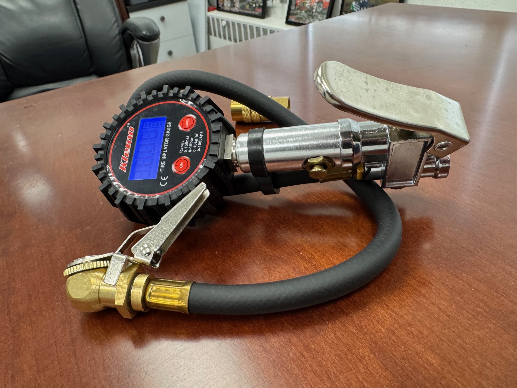 Digital Tire Inflator featuring a Locking Air Chuck and Pressure Release This tire inflator, equipped with a 160 PSI digital gauge and pressure release functionality, enables precise tire inflation. With the pressure release handle engaged during the inflation process, you can conveniently monitor the tire pressure without the need to switch between the gauge and air chuck. The inflator comes complete with a male quick connect fitting and a secure locking air chuck.