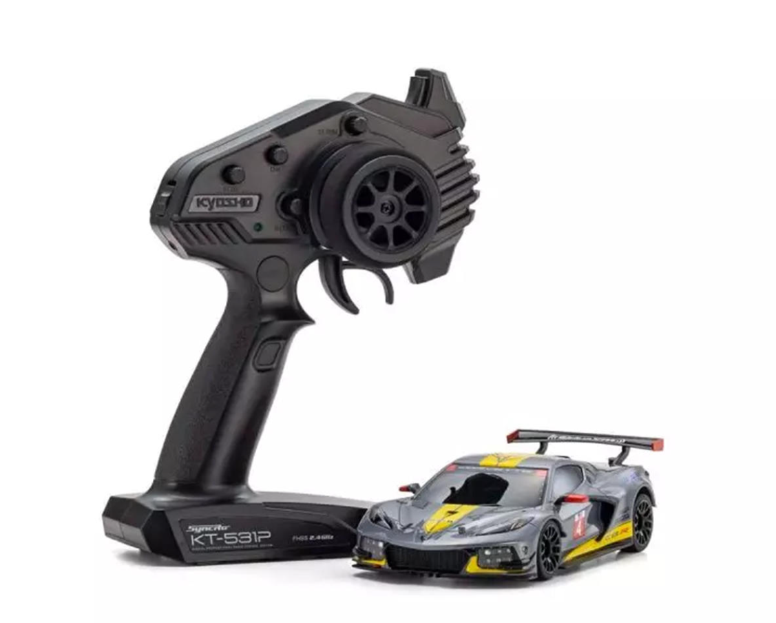 The MR-04 RWD Mini-Z ReadySet with Chevrolet Corvette C8.R Body by Kyosho delivers exceptional handling and precision for racers of all levels. With a fully assembled chassis and included transmitter, you can start racing immediately by simply adding batteries. The MR-04 chassis enhances performance with a lower center of gravity, upgraded steering, and a refined suspension system for better control. Whether you're racing indoors or tuning for competitive performance, the MR-04 Mini-Z offers an exciting and customizable driving experience.