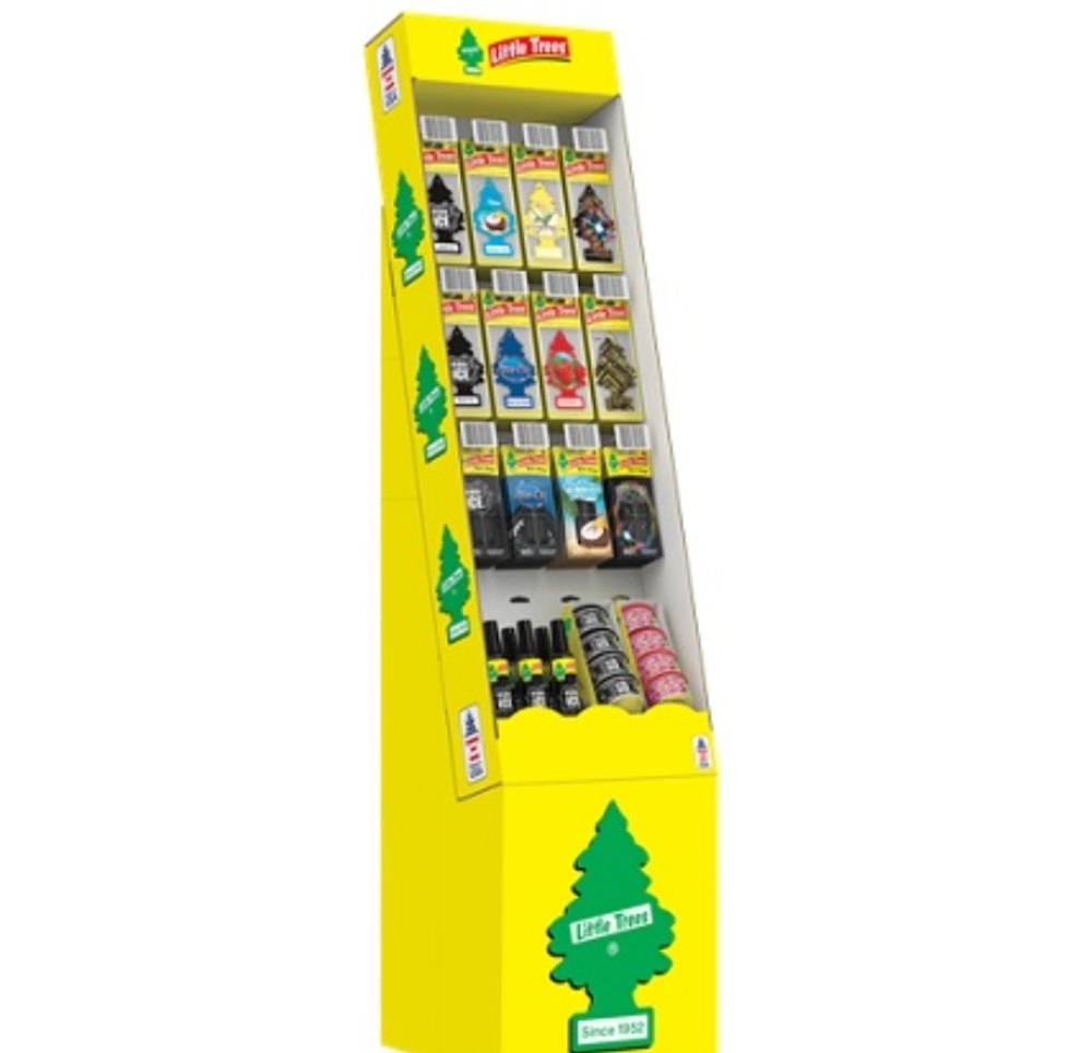 This specific display is an absolute powerhouse for B2B (Business-to-Business) sales because it comes loaded entirely with 3-Pack Little Trees. Instead of a customer buying a single tree for a couple of bucks, the 3-packs instantly triple the retailer's average transaction value per peg. Complete with a sturdy cardboard floor base, it allows the shop owner to place this high-visibility display anywhere in the store—right in the center aisle or next to the checkout line—without sacrificing valuable wall or counter space.