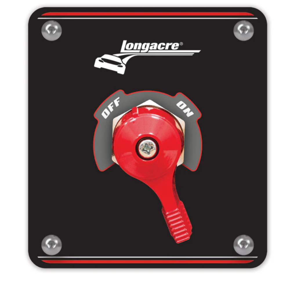 - Manual battery disconnect switch with a bright red handle