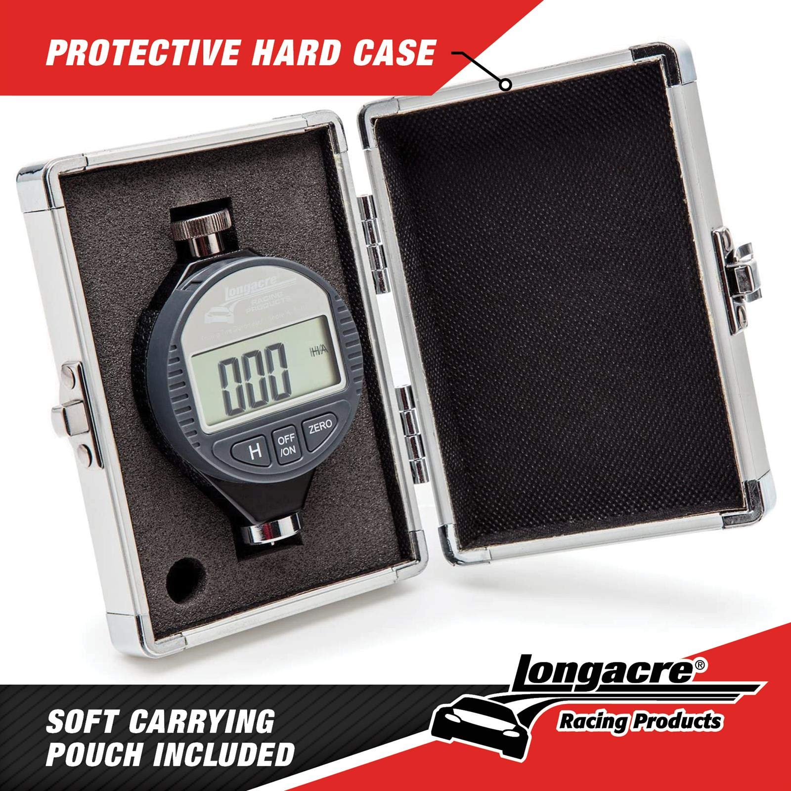 Elevate your tire performance management with Longacre's Racing Tire Hardness Tester featuring a NEW Digital Readout (0-100 on the Shore 'A' scale) – an advanced tool designed for precision and ease of use.