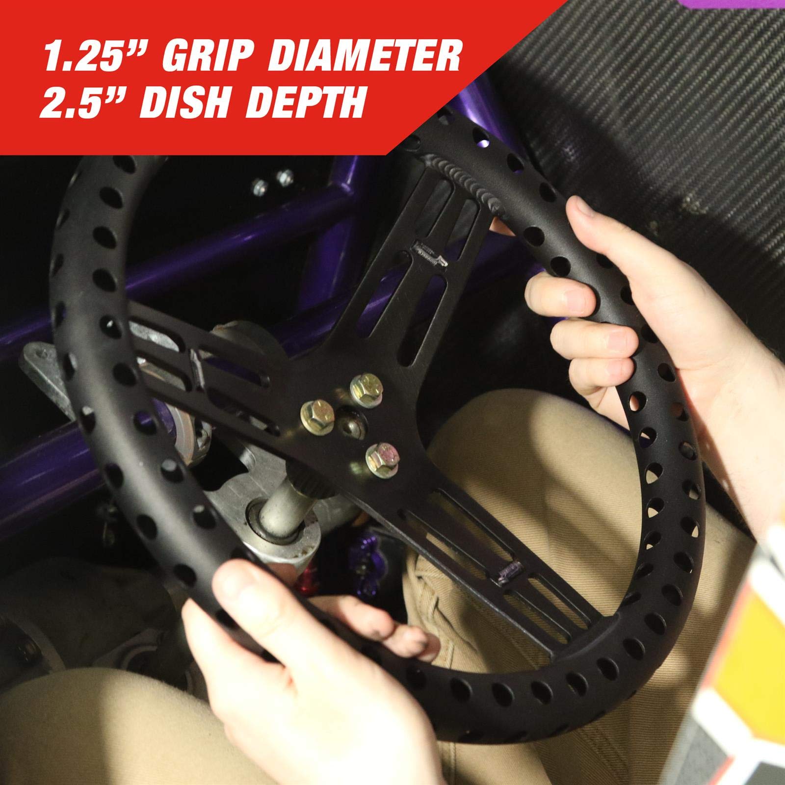 Dished Design: The 14" dished wheel adds a level of comfort and ergonomics to your driving experience. The 2 1/2” dish depth ensures an optimal steering position, allowing for precise control and a natural feel.