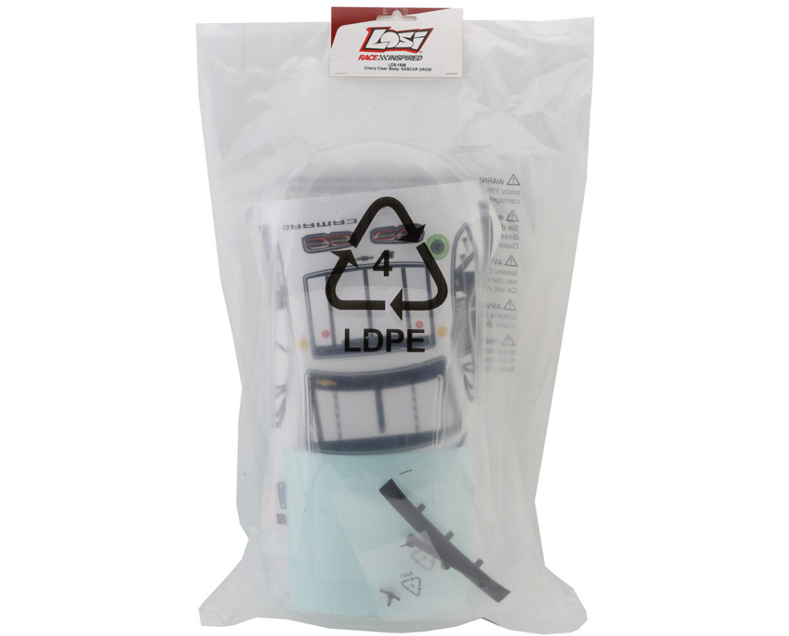 Losi 1/12 NASCAR 2024 Chevy Camaro Body. Officially licensed, pre-trimmed and un-painted, this optional body is intended for the Losi 1/12 NASCAR platform to allow drivers to custom paint their Losi NASCAR with their own paint, colors and schemes to separate their NASCAR from the crowd.