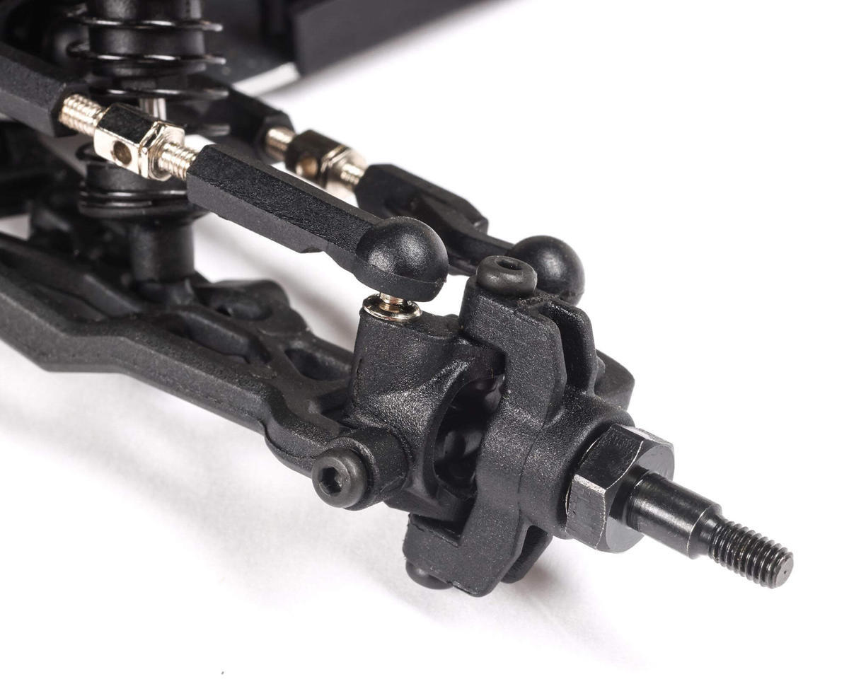 The suspension for the Losi Mini-B was scaled down from the Losi 22 platform to give you extreme performance in a small package. Adjustable turnbuckles and threaded, oil-filled shocks allow you to fine tune the suspension to your driving surface. The front and rear shock towers feature optional mounting holes to further adjust suspension setup.