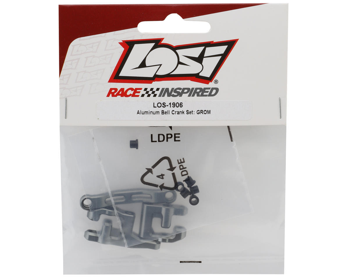 This is the Losi® NASCAR® Aluminum Bell Crank Set, this upgraded bell crank set helps take the slop out of your factory steering system. With the added strength of aluminum, this bell crank will help keep your steering angels and take impacts while still staying on track. This aluminum bell crank set reuses the factory hardware so no added parts are needed.