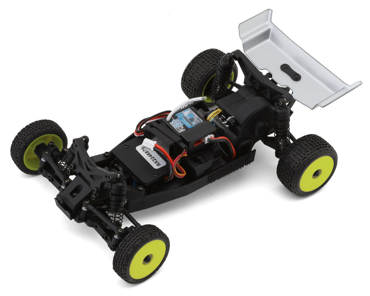 Built around a strong anodized aluminum chassis plate, the Microbe exudes durability and style. Metal driveshafts and a three-gear transmission with a gear differential ensure reliable power transfer and smooth acceleration. The oil-filled adjustable coilover shocks provide superior damping, allowing the buggy to handle bumps and jumps with ease while maintaining stable traction.