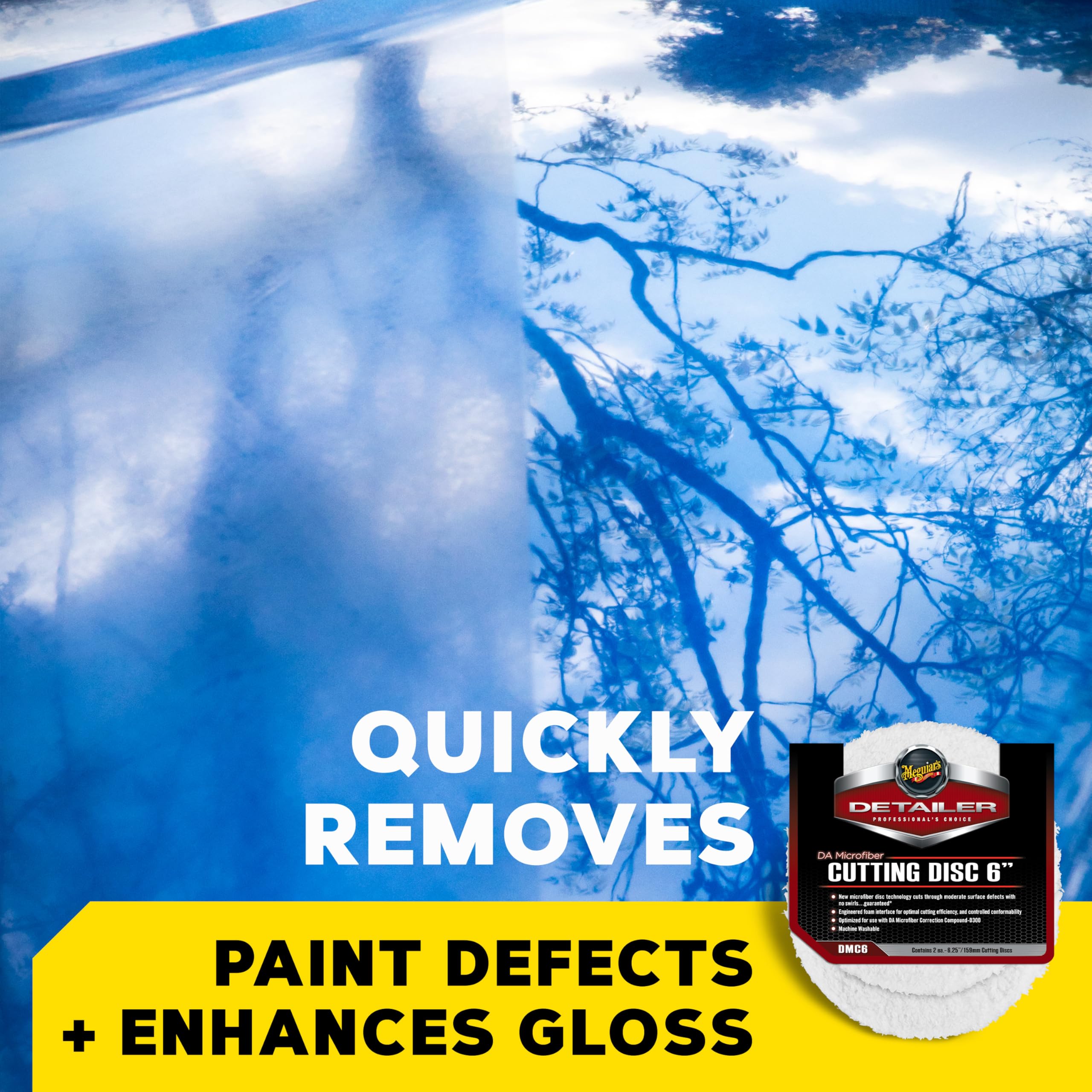 The microfiber disc technology is engineered for efficient defect removal, cutting through severe to moderate defects without causing swirls. The discs are optimized for use on flat surfaces, providing advanced cutting and finishing results with increased disc and tool efficiency. Designed to work seamlessly with Meguiar’s® D300 DA Microfiber Correction Compound and/or Meguiar’s® Ultra Polishing Wax, this system simplifies paint correction while delivering flawless, swirl-free results in just two steps. The hook-and-loop system ensures a secure attachment to the Meguiar's® DBP6 - 6” Soft Buff™ DA Backing Plate, and the discs are reusable and machine washable for long-lasting performance. The kit includes two pads, providing great value and versatility for professional-grade detailing.