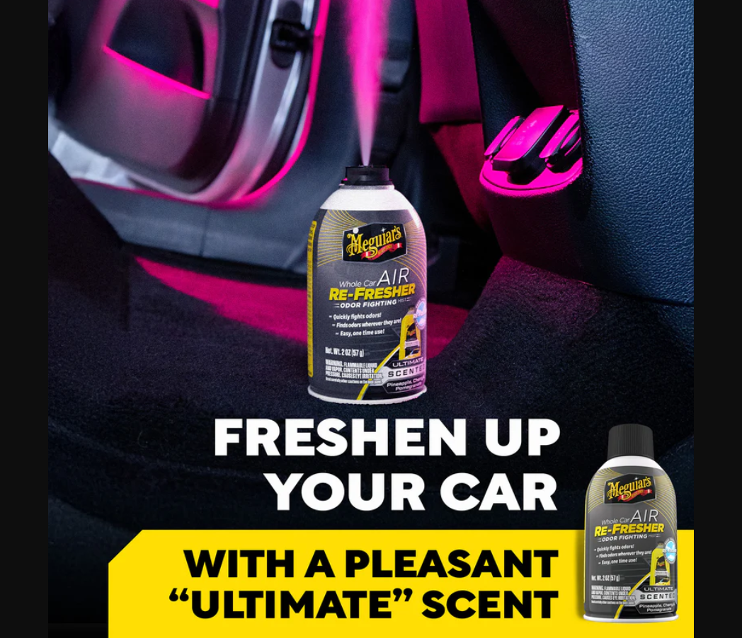 ULTIMATE SCENT AIR FRESHENER: Meguiar’s Whole Car Air Re-Fresher not only fights tough interior odors but also leaves a premium, long-lasting scent. Enjoy the luxurious freshness of a clean, new, and refreshed ride every time you step inside your vehicle