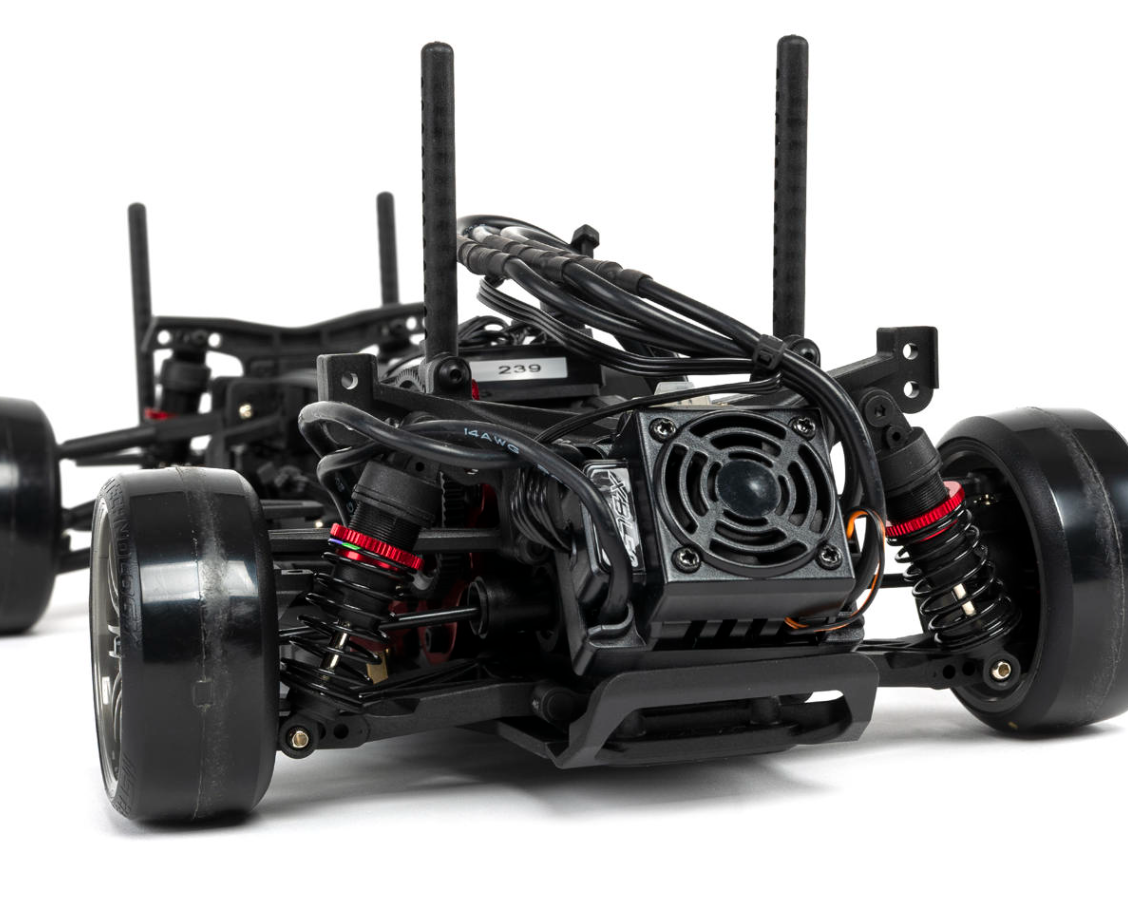 Designed with flexibility in mind, the RMX 2.5 includes two motor mounting positions—high or low center of gravity—allowing drivers to tailor the handling characteristics to their preference. The updated spur gear design makes it easy to convert the drivetrain from RMX to RRX configuration, adding another layer of customization. Combined with a durable steel CVD axle system and Hobbywing ESC, this drift car is ready for action.