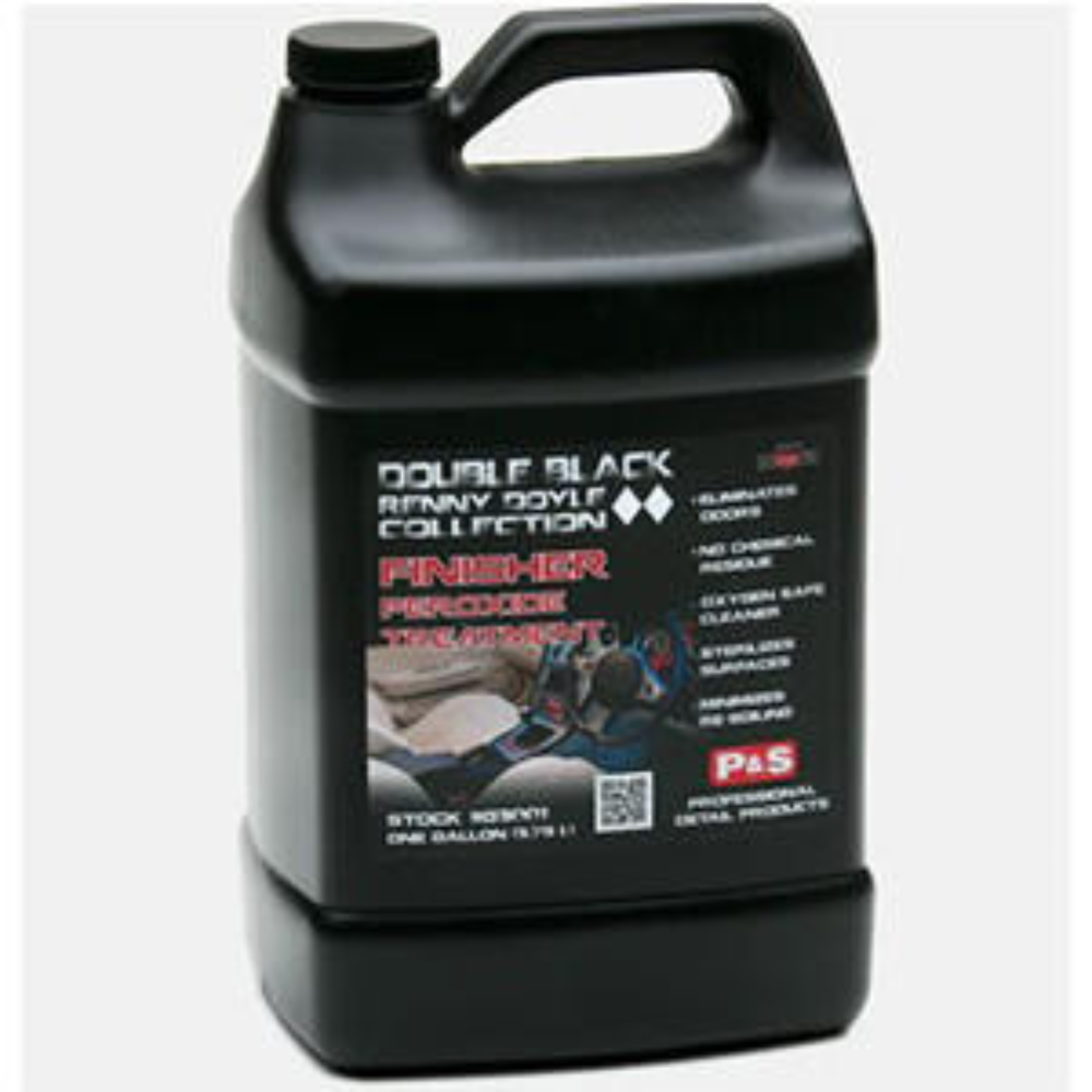 Finisher Peroxide Treatment is Step #3 in the Double Black Interior Cleaning System. Finisher completes the system by adding a final attack on odor causing molecules and organic stains. Finisher breaks down odor causing chemicals, eliminates any residual organic stains and slightly sterilizes the surface. Finisher assists in reducing water stains, mold and mildew odors as well as finalized stain removal. Finisher breaks down into oxygen and water, leaving no chemical residue left that requires further removal.